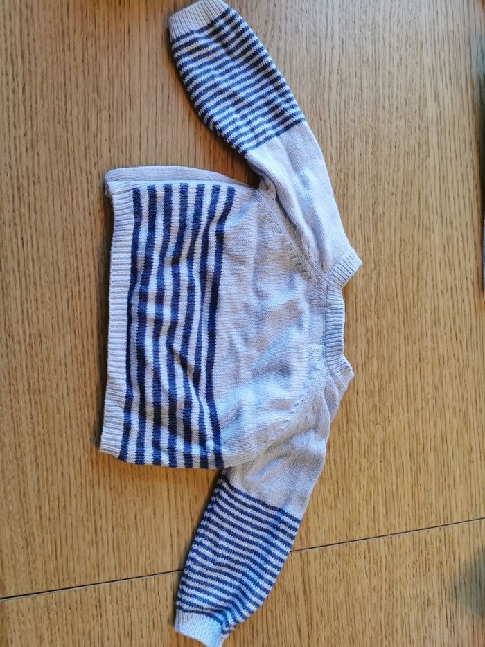 Pull 1 mois rayé bleu excellent état, marque Natalys