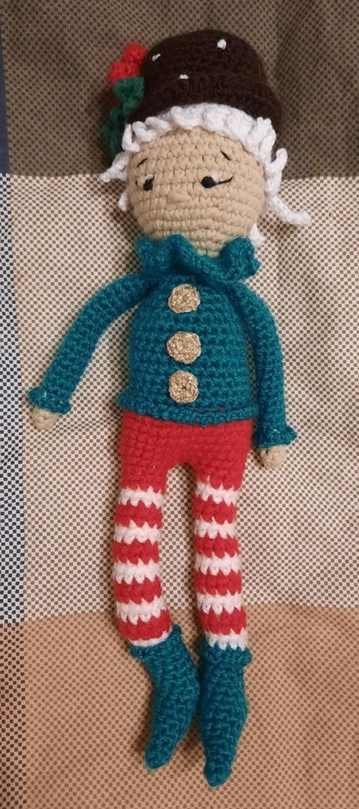 Personnage chandelier en coton-acrylique. Environ 28 cm de hauteur.