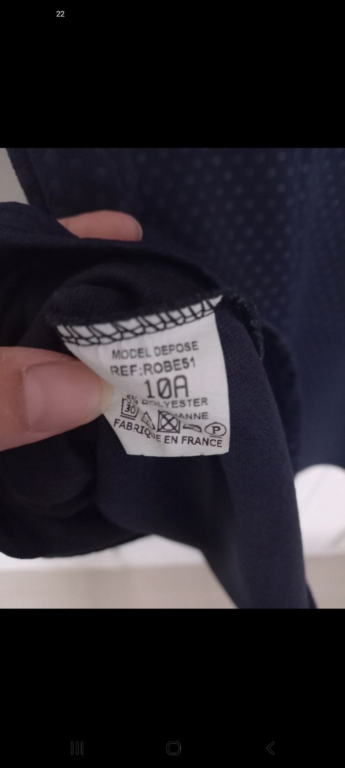Robe bleue marine avec des pois plus clair Avec un nœud Très bon état juste 2 points de couture à faire au col voir photo