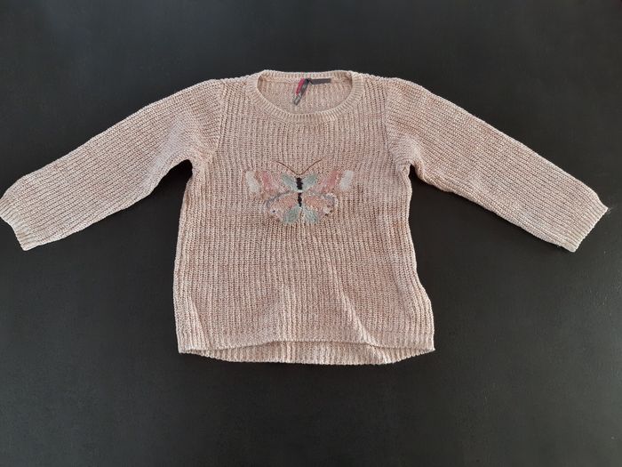 Pull rose taille 3 ans, dessin de papillon en paillette sur le devant.