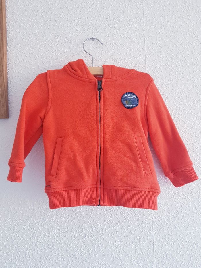 Tous mes articles Catimini : #catiminisev Tous mes gilets : #giletsev Tous mes pulls : #pullsev Tous mes habits ♂️ 9 mois : #9moissevgarcon Tous mes habits ♂️ 12 mois : #12moissevgarcon Gilet manches longues, fermeture zippée, avec capuche Marque : CATIMINI Couleur : orange Taille : 12 mois - 74 cm État : très bon état 100% coton Doublure : 100% coton Retrait sur place ou envoi.