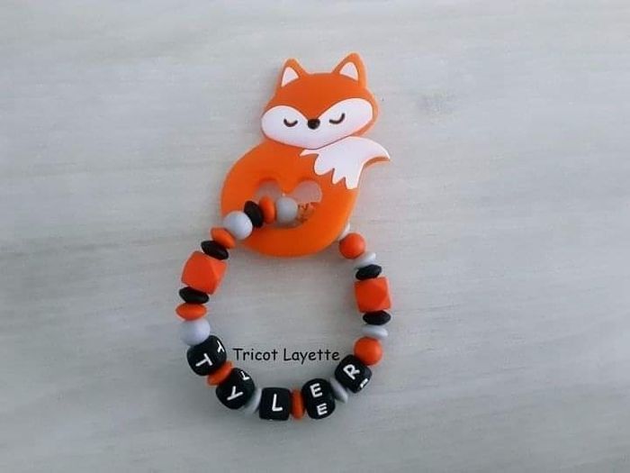 Anneau de dentition renard Réalisé avec du ruban à la place du fil, pour plus de sécurité Prénom au choix (personnalisation par message) Les couleurs peuvent être changées Delais de fabrication: maximum 5 jours (hors dimanche et jour férié) Je ne réalise l'anneau qu'une fois le paiement validé, une photo vous sera envoyée avant l'envoi.