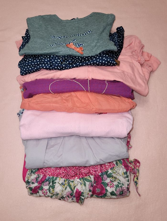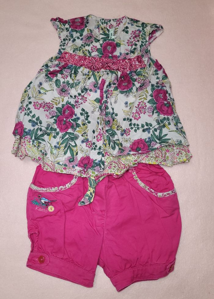Lot de 8 ensembles bébé fille T. 6 mois, articles de première main, TBE composé de : - 1 tunique et short KENZO - 1 robe et T-shirt manches longues SERGENT MAJOR - 1 tunique et pantalon SUCRE D'ORGE - 1 débardeur et pantalon OBAIBI - 1 T-shirt manches courtes et short MARESE - 1 Tunique/robe et short SERGENT MAJOR - 1 Tunique/robe et 1 T-shirt manches longues avec un legging et culotte assorties (pièces basses légèrement passées) 25€ le lot