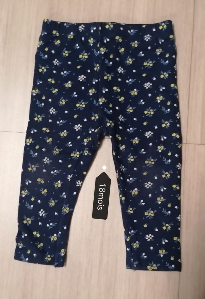 Legging filles, tex baby 18mois. Bleu /fleuries 96%coton. 5%elasthane Porté. 2€