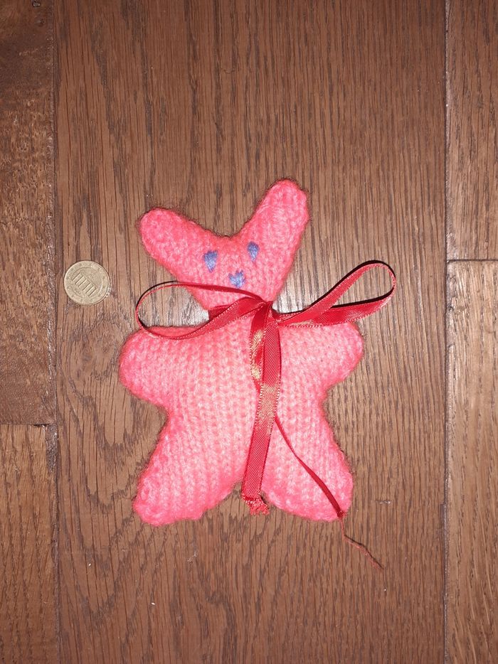 Petit lapin rose tricoté main - photo numéro 1