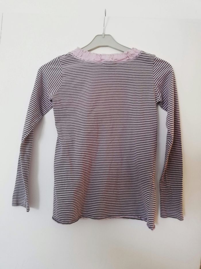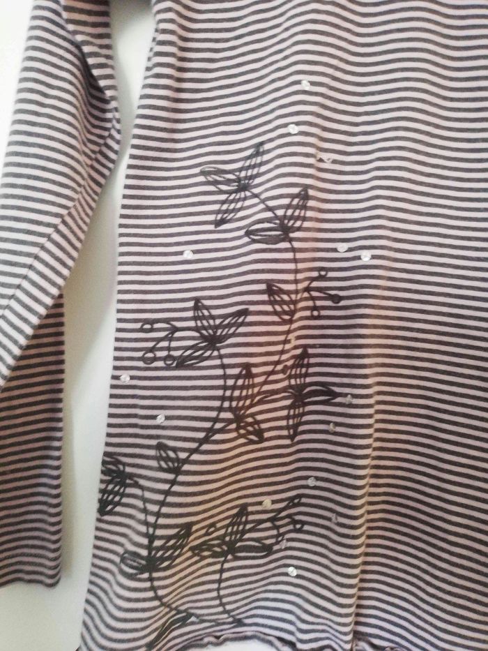 Vend t-shirt manche longue a rayure. Dessins noir avec perle sequins donc une a recoudre .