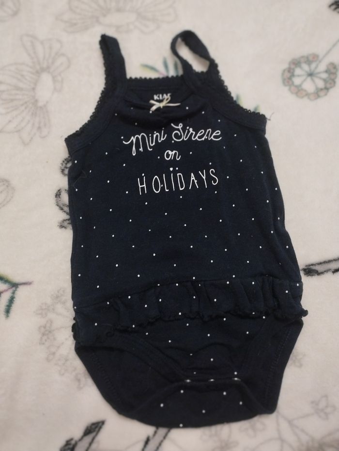 Body a bretelles en taille 9 mois de la marque Kiabi en très bon état avec inscription « mini sirène on holiday »