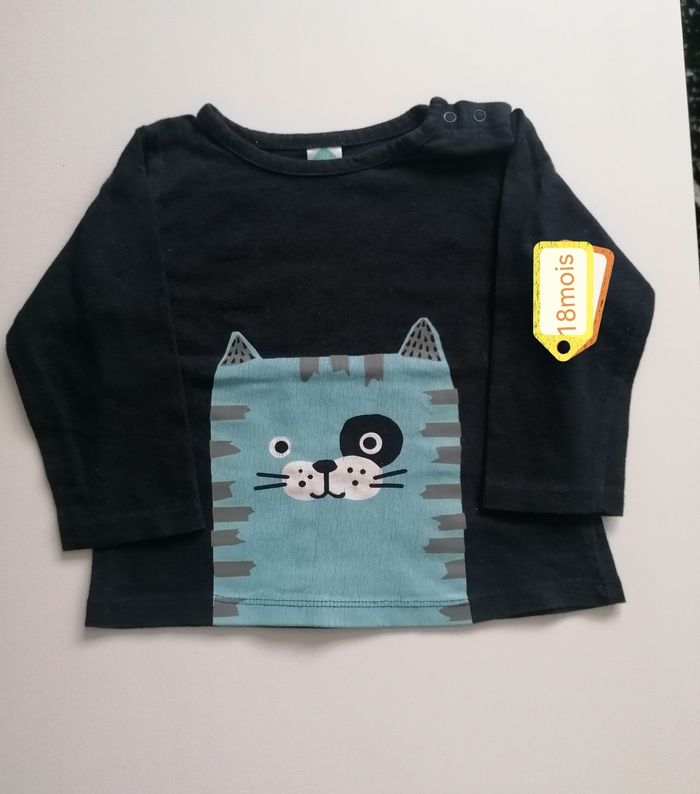 T. Shirts Manche longue garçon Tex baby. 18mois. Bleu marine 100%coton. Porté 2€