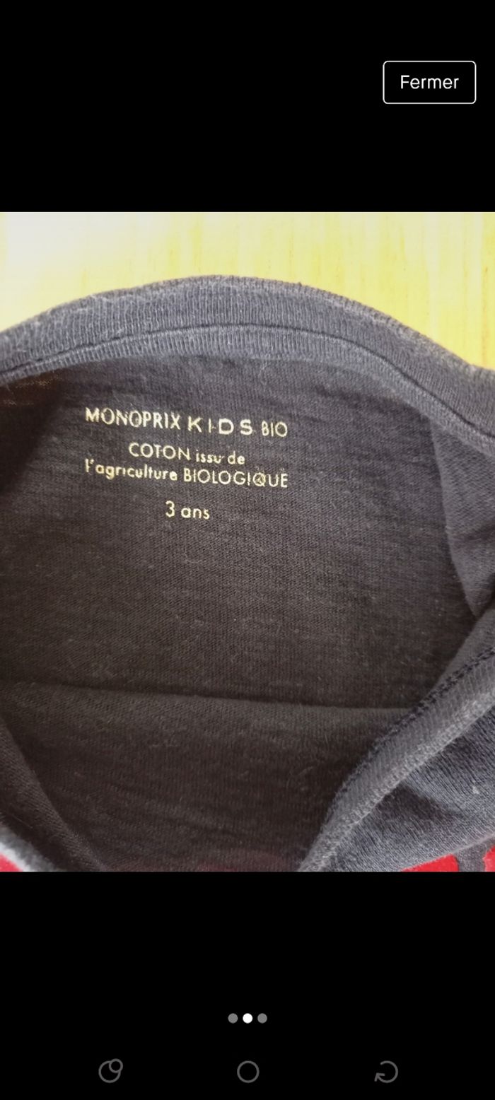 T-shirt bleu marine inscription Paris en velours rouge En très bon état Monoprix kid bio Taille 3 ans