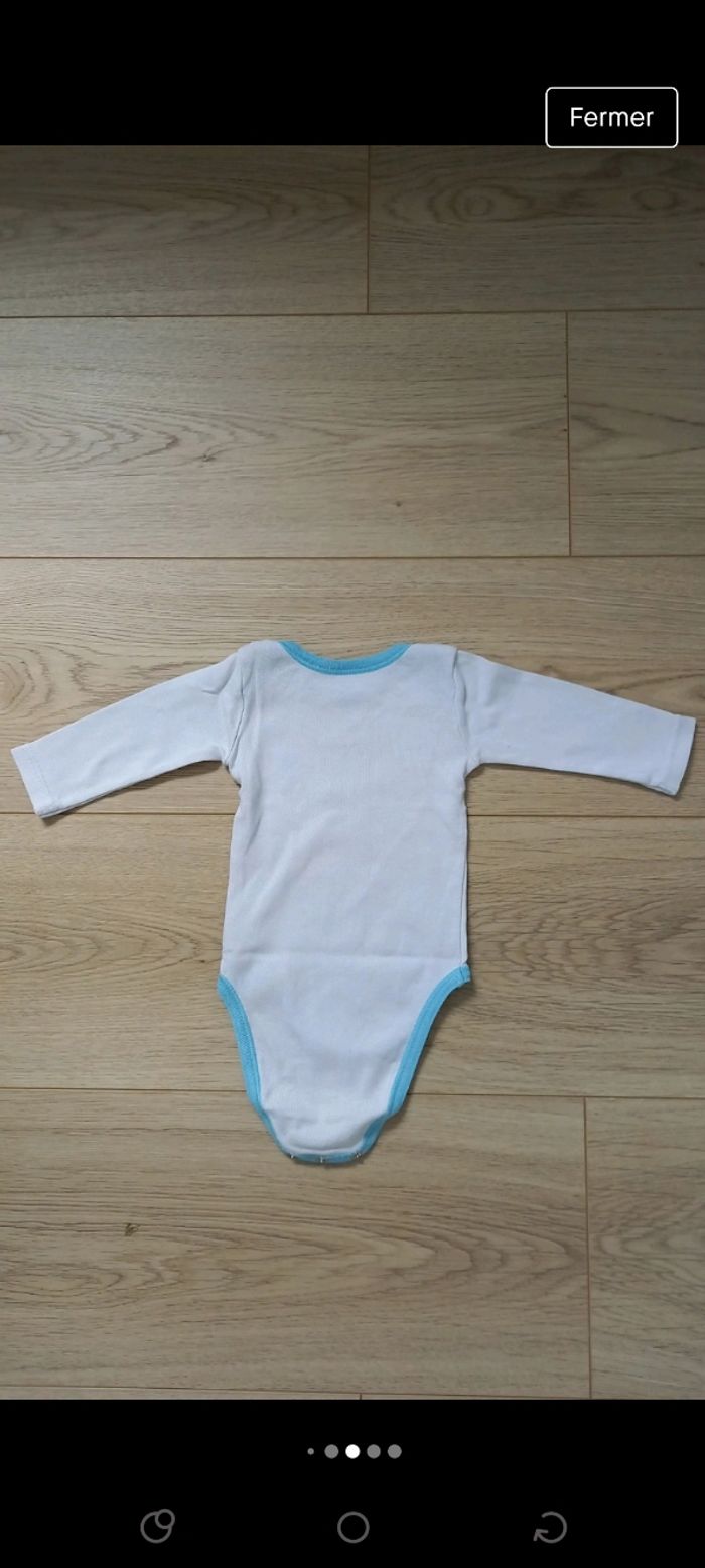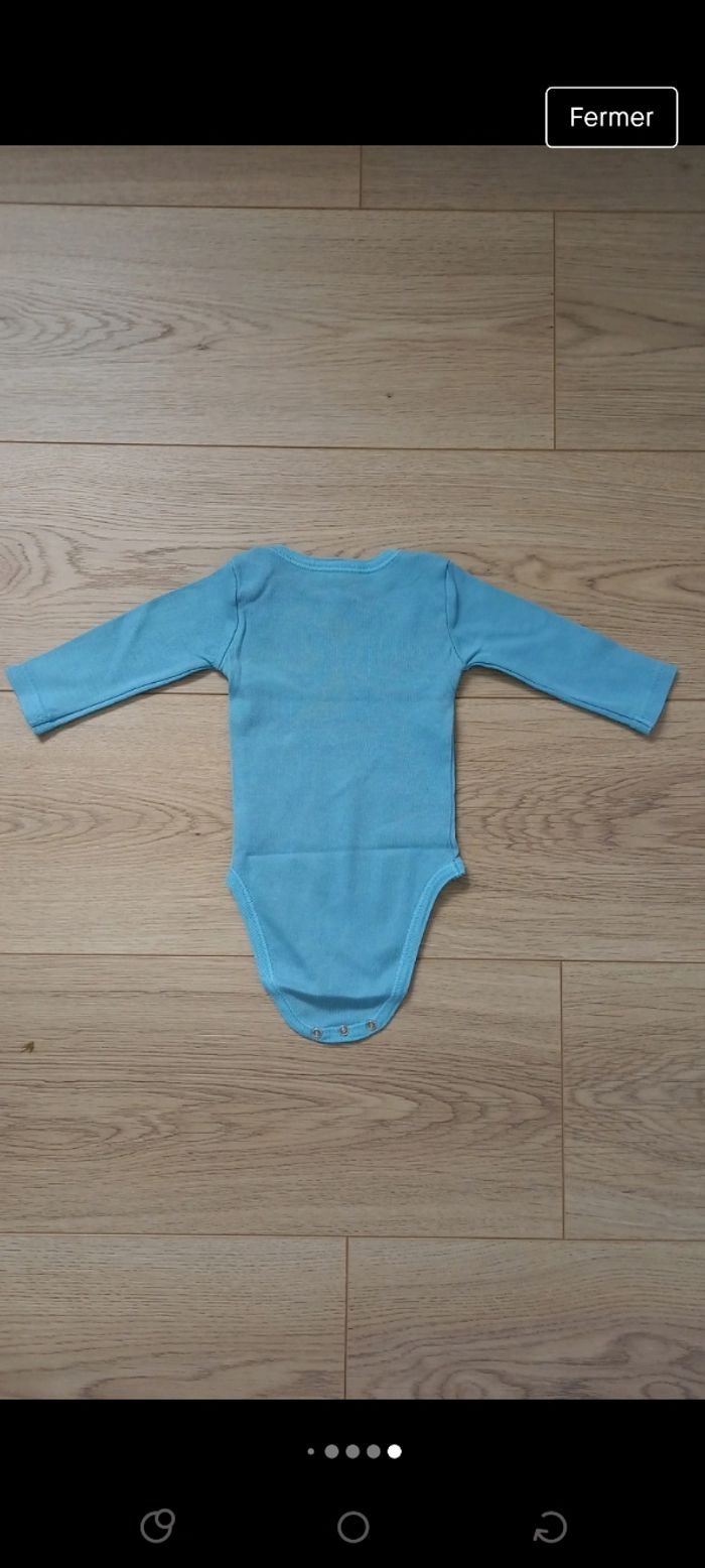 3 bodies de la marque tex 2 Unis, un gris et un bleu + 1 blanc avec motif lion 1 bodie superbaby , bleu inscription rouge et jaune superbaby En très bon état #mathilde882g3mois #bodiemancheslongues