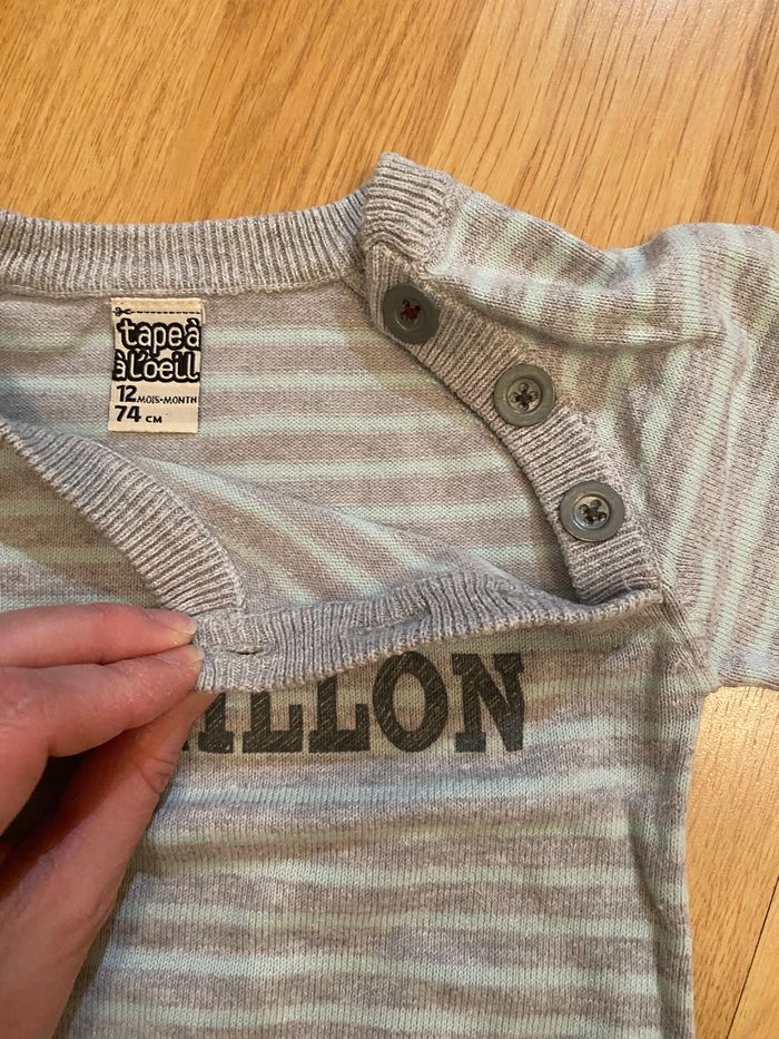 Pull rayés 12 mois marsupial tape à l’œil . Ouverture sur l’épaule avec 3 boutons Vêtement acheté neuf