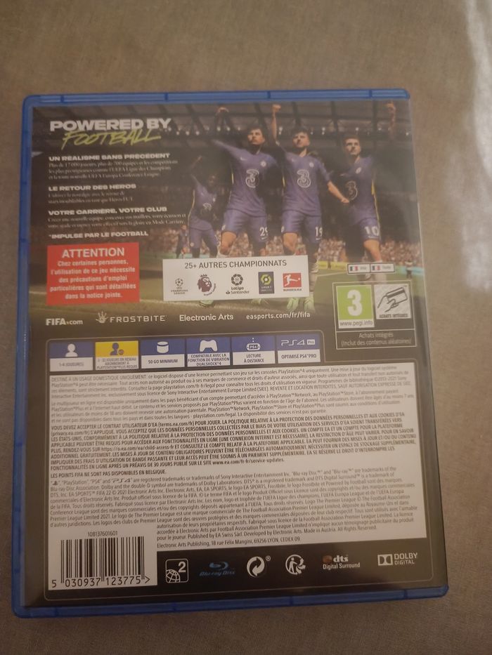 Bonjour, A vendre le jeu FIFA 22 sur PS4 en excellent état, aucune rayure Prix : 20 euros