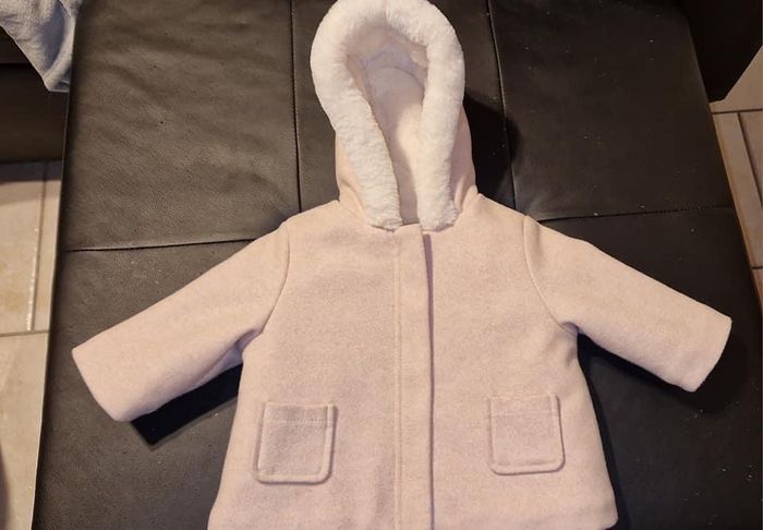 Manteau fourré de couleur rose En très bonne etat peu portée Taille 6 mois