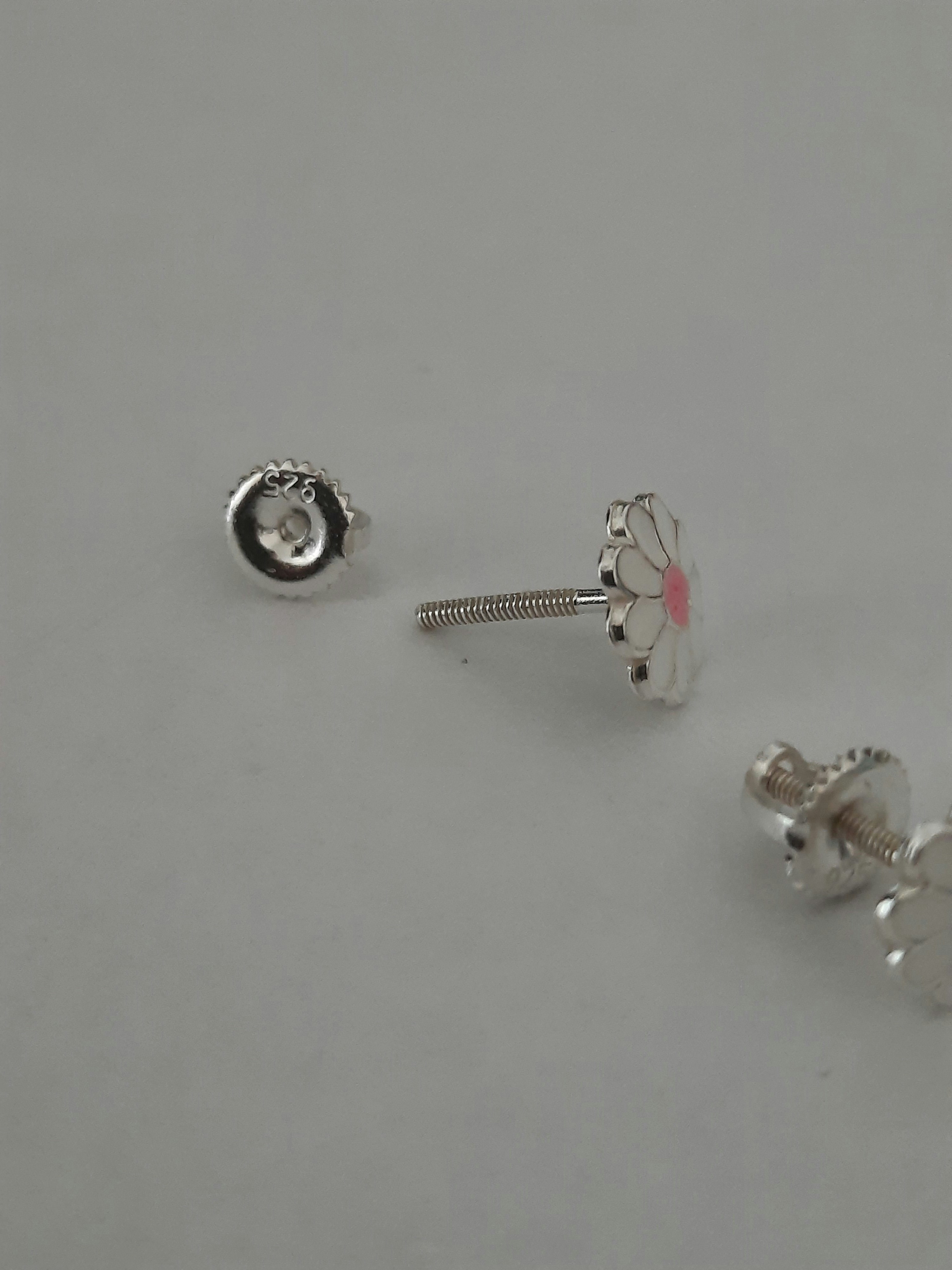Boucles d'oreilles fleurs marguerites roses en argent 925 fermoirs vis