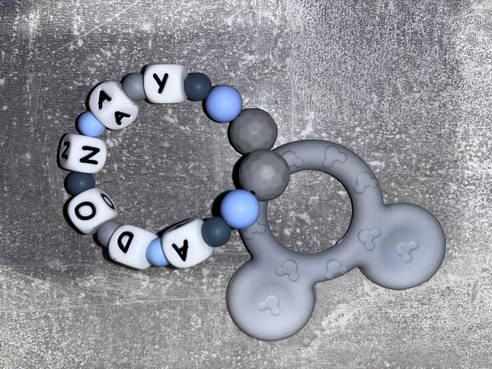Anneau de dentition personnalisé en silicone ou en bois au souhait de l’acheteur Possibilité de créer avec d’autre modèle ( Marie , mickey, roi lion , minnie , thème noël plein d’autres) n’hésitez pas à me demander et regarder mon dressing. Une photo vous sera envoyée avant l’expédition pour vous ayez un aperçu du rendu. Tous les produits sont réalisés avec du materiel spécial conçu aux bébés , enfants.