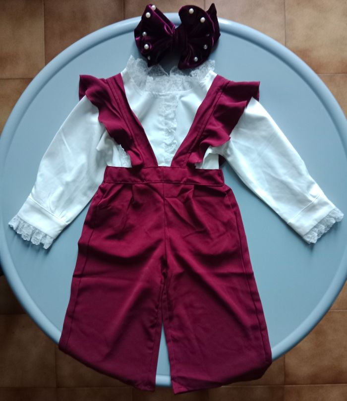 Ensemble combinaison fluide, bretelles volantées, blouse élégante à dentelle, bandeau cheveux gros noeud perlé