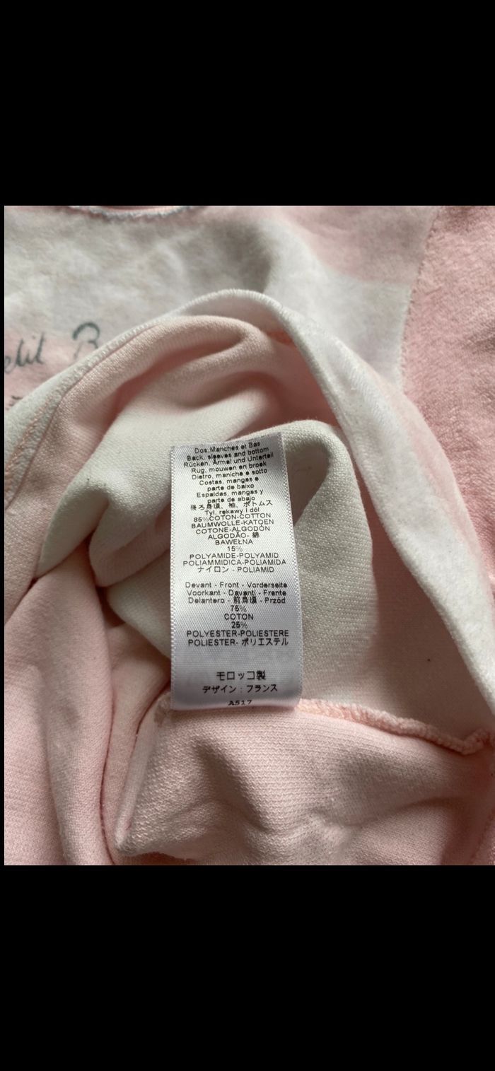 Porté, une légère tache que j'ai vu en prenant la photo. N’hésitez pas à me suivre car encore beaucoup de vêtements fille, des chaussures en cuir, des chaussons… (du 1 mois au 8 ans), des vêtements garçon (du 1 au 6 mois pour le moment ). Maison non-fumeurs et sans animaux même si je les adore. Il n'y aura pas de poils ou d'odeur désagréable. Vous recherchez quelques choses, demandez moi. Je réponds très rapidement. Bon shopping 😊.