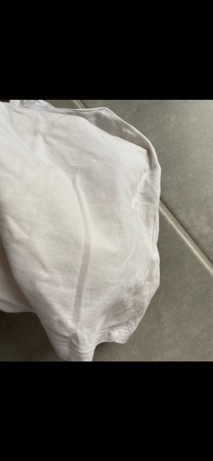 Porté, petites taches à peine visible, et légèrement jauni voir photo. Doit partir au détachant. N’hésitez pas à me suivre car encore beaucoup de vêtements fille, des chaussures en cuir, des chaussons… (du 1 mois au 8 ans), des vêtements garçon (du 1 au 6 mois pour le moment ). Maison non-fumeurs et sans animaux même si je les adore. Il n'y aura pas de poils ou d'odeur désagréable. Vous recherchez quelques choses, demandez moi. Je réponds très rapidement. Bon shopping 😊.