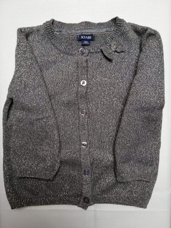 Gilet gris avec des paillettes dorées, un petit noeud au niveau du col pour le côté chic .
