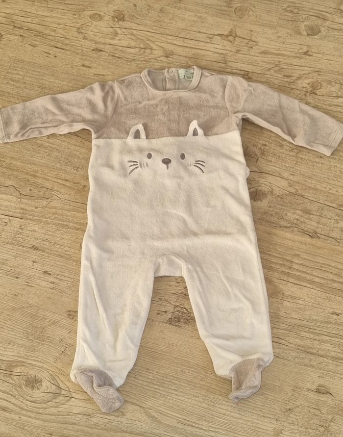 Pyjama chaud Motif chat avec oreilles en relief Attache dans le dos