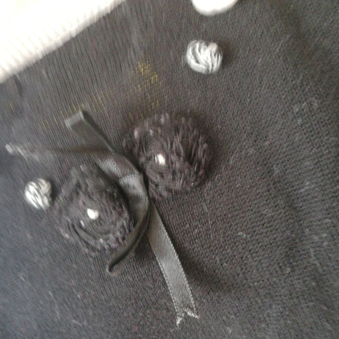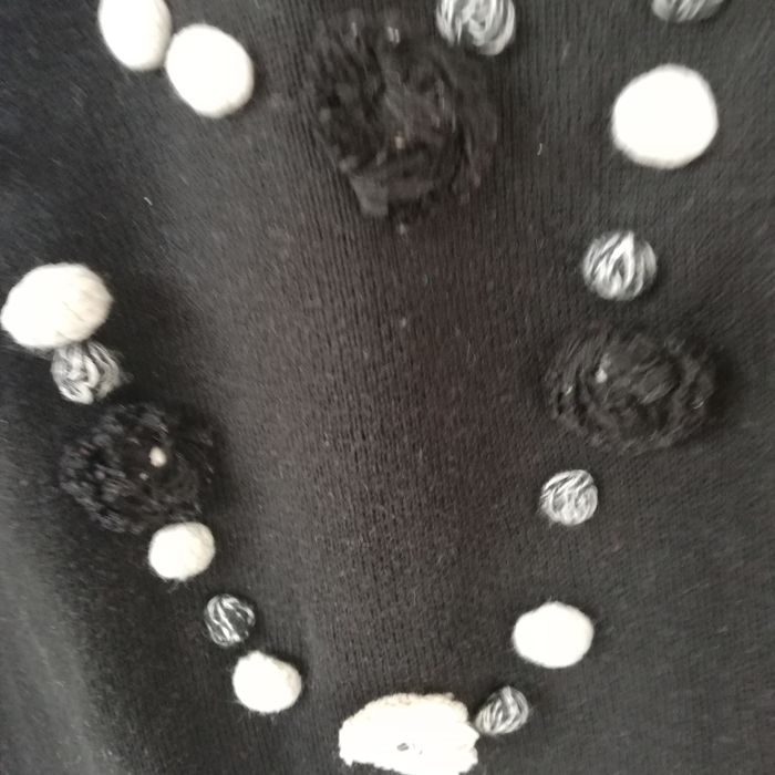 Très bon etat Original avec son faux collier en pompons Couleur noir et beige Les fibres accrochent un peu