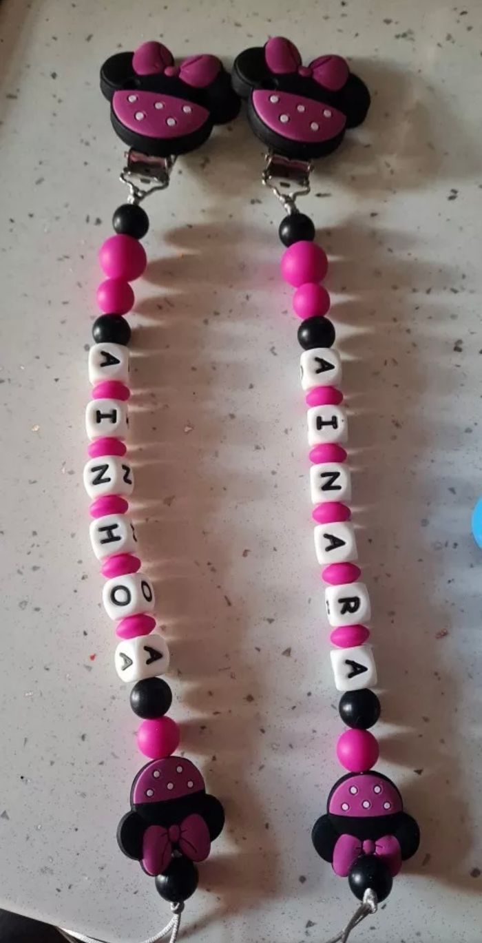 Attache tétine personnalisé en silicone ou en bois au souhait de l’acheteur Possibilité de créer avec d’autre modèle ( Marie , mickey, roi lion , minnie , thème noël plein d’autres) n’hésitez pas à me demander et regarder mon dressing. Une photo vous sera envoyée avant l’expédition pour vous ayez un aperçu du rendu. Tous les produits sont réalisés avec du materiel spécial conçu aux bébés , enfants.
