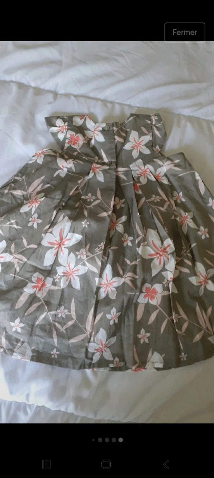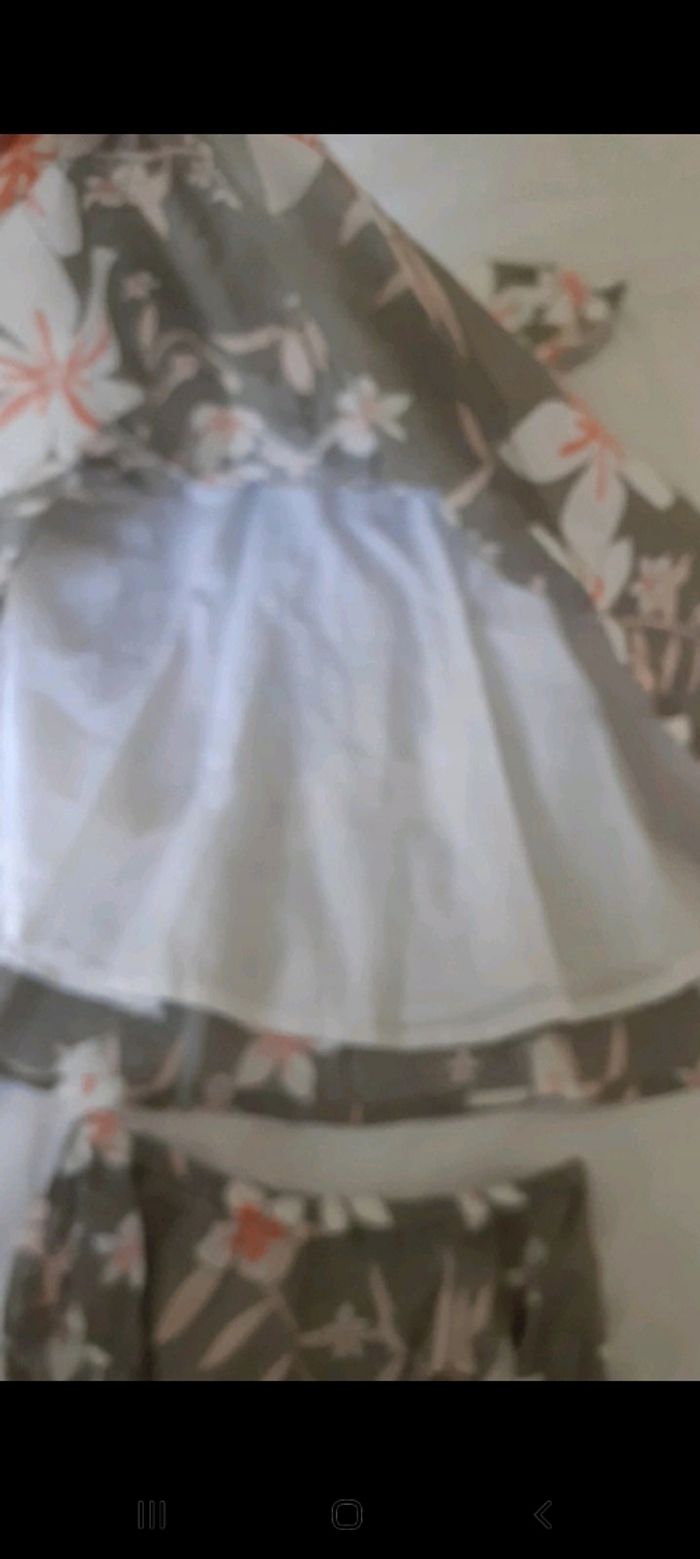 Robe et culotte taupe à fleurs blanche et rose - photo numéro 5