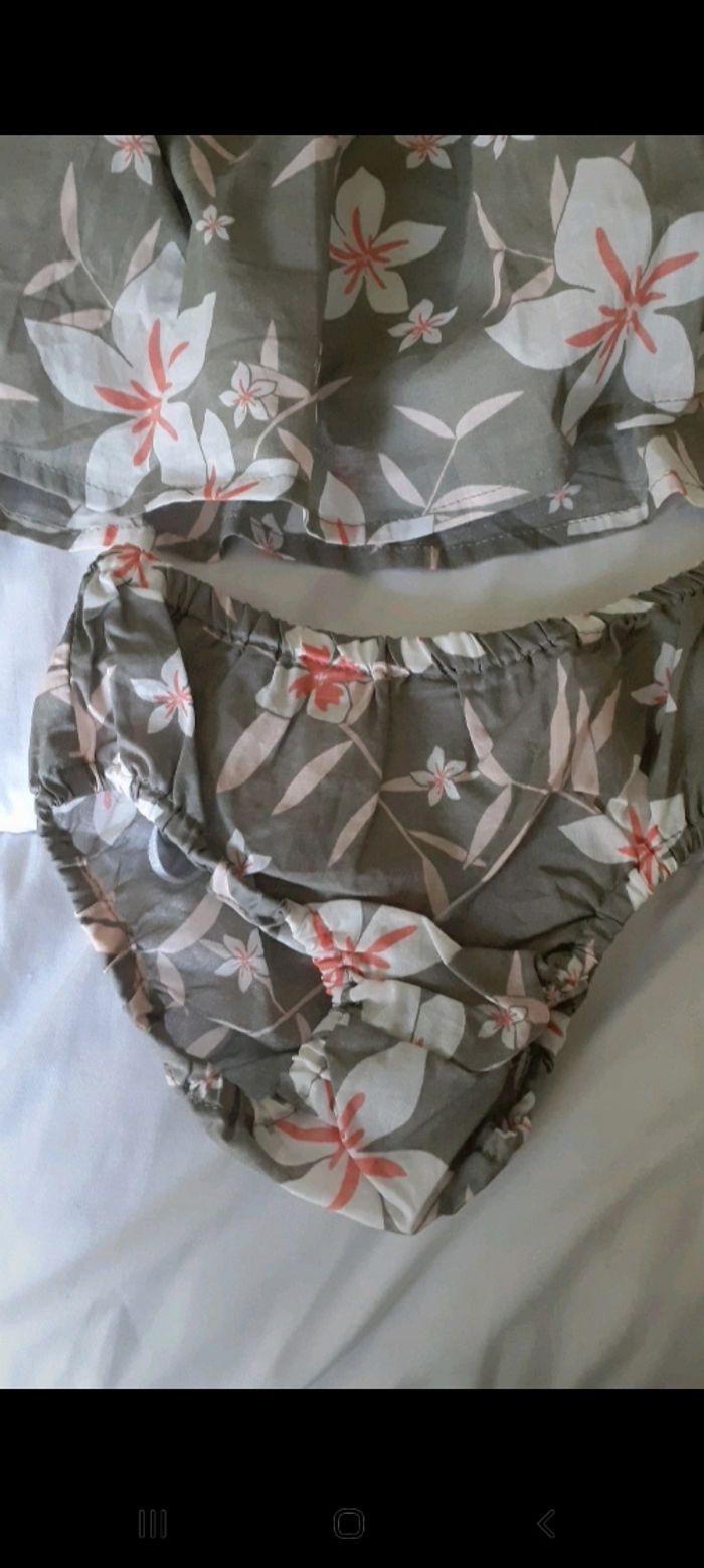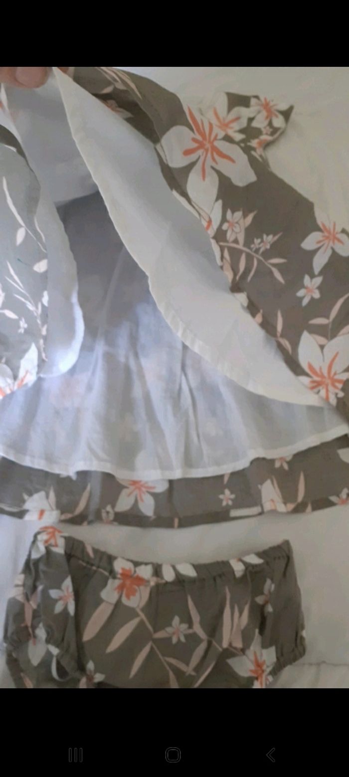 Robe et culotte taupe à fleurs blanche et rose - photo numéro 6