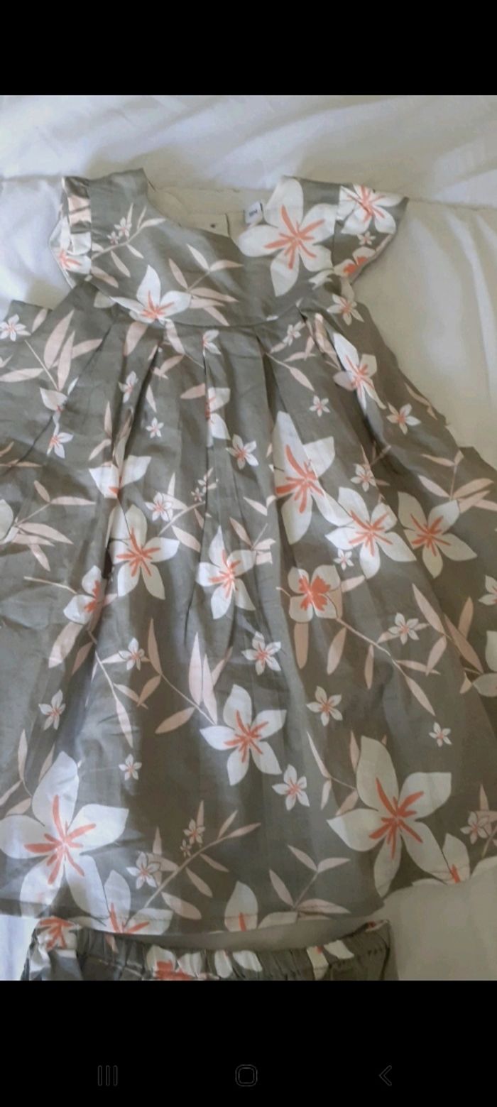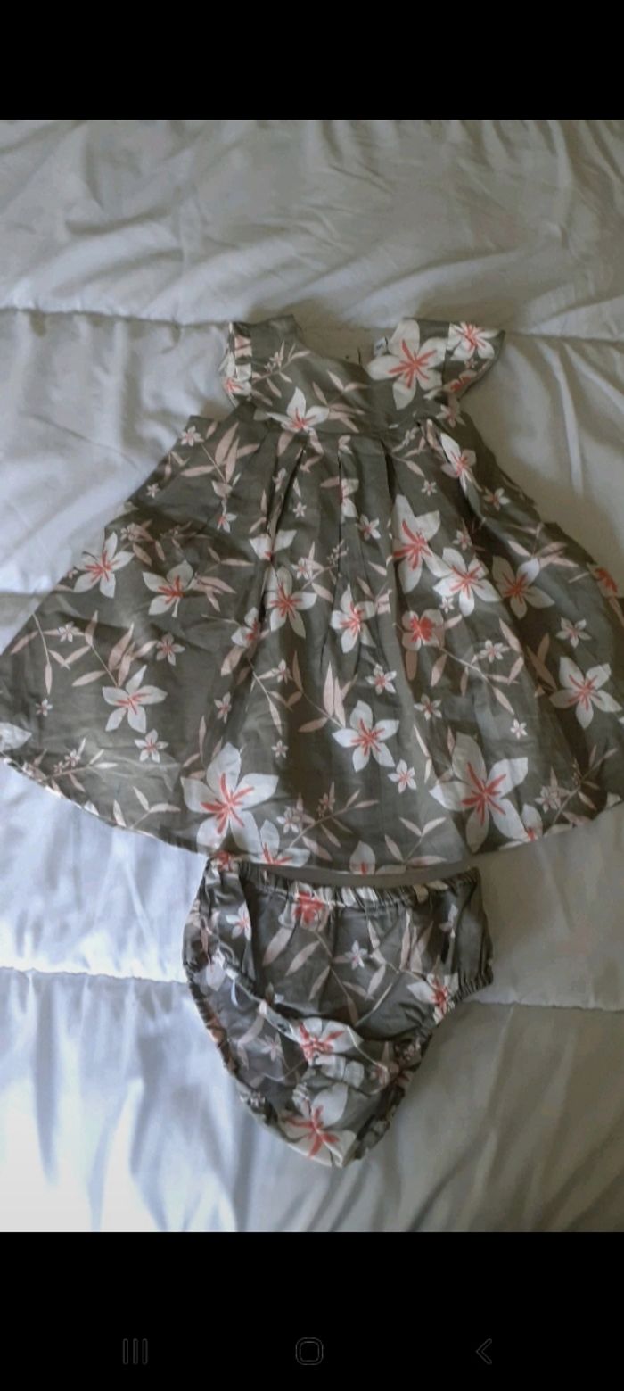 Robe et culotte taupe à fleurs blanche et rose - photo numéro 1