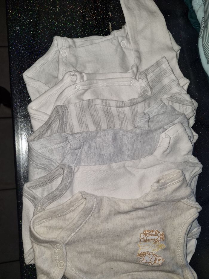 2 bodies manches longues : 1 Okaibi 1 p'tit bisou 4 bodies manches courtes: 2 Okaïbi 2 sans marques