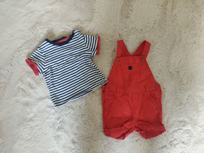 Vends ensemble salopette rouge et t-shirt marinière. État neuf (porté 1 fois)