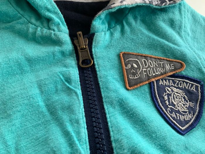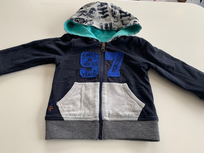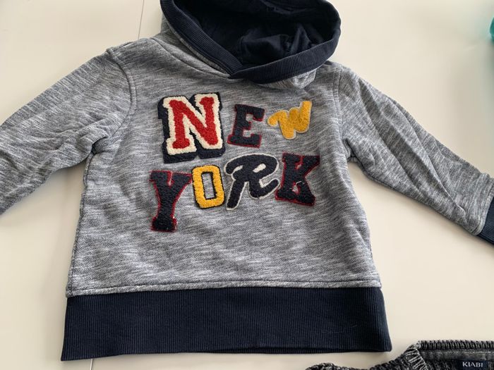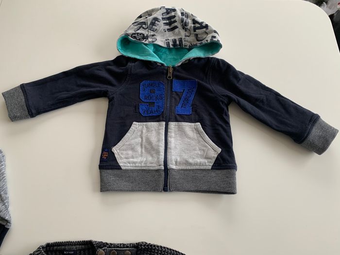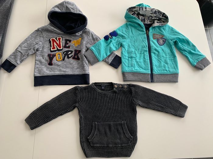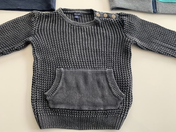Un pull tape à l’œil Un Sweats réversible Catimini Un pull effet délavé Kiabi Un pyjama 1 pièce comme neuf