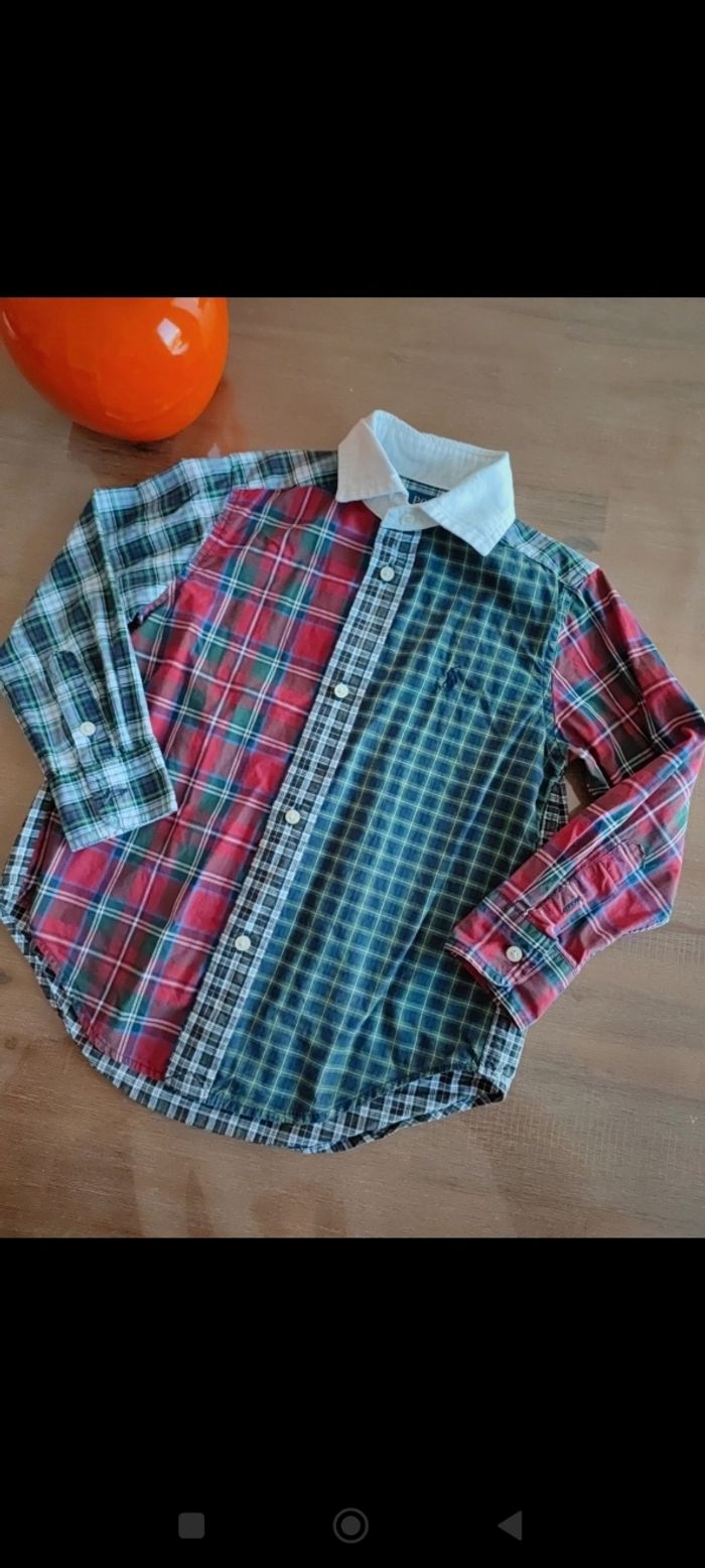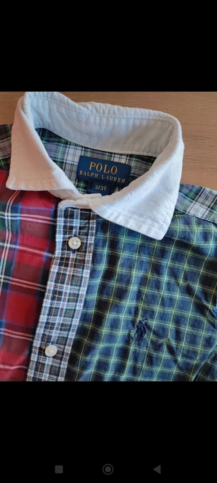 Chemise manches longues Couleurs rouge vert blanc marine, à carreaux Col blanc Découpe arrondie en bas Jolie portée Taille 3ans (taille légèrement plus grand) Marque Ralph Lauren, authentique Portée quelques fois Très bon état Envoi mondial Relay possible tous les jours