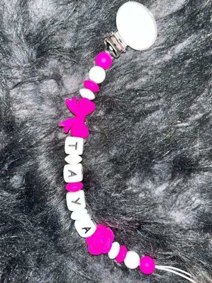 Attache tétine personnalisé en silicone ou en bois au souhait de l’acheteur Possibilité de créer avec d’autre modèle ( Marie , mickey, roi lion , minnie , thème noël plein d’autres) n’hésitez pas à me demander et regarder mon dressing. Une photo vous sera envoyée avant l’expédition pour vous ayez un aperçu du rendu. Tous les produits sont réalisés avec du materiel spécial conçu aux bébés , enfants.
