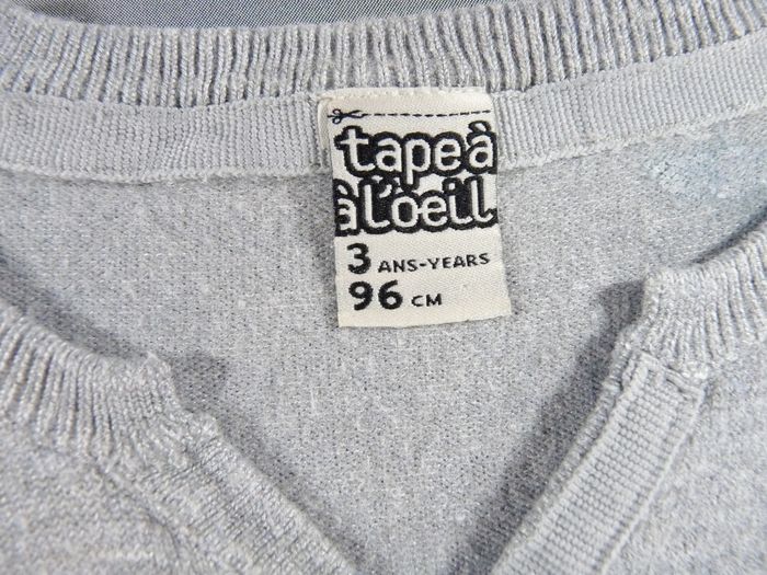 Pull tunique tricot fin gris clair Tape À L'oeil 3 ans 96 cm fille Référence : 2211-07N-F03A Type : Pull tunique Motif : Marque : Tape À L'oeil Taille : 3 ans 96 cm Pour : fille Coloris : gris clair Matière : coton Saison : toutes saisons Quantité : article unique, un seul exemplaire en stock Qualité : très bon état Descriptif : col cœur, boutons encolure, ceinture à nouer taille, bords-côtes col et bas Poids : 134 g Prix neuf : 15,99 € Prix occasion : 4,49 € #pimoussesfille #pimousses3ansfille #tao #fille #pull #gris clair #3ans #pimousses #secondemain #layettes #dressingbébé #vêtementsbébé #dressingenfant #vêtementsenfant #dressing tq
