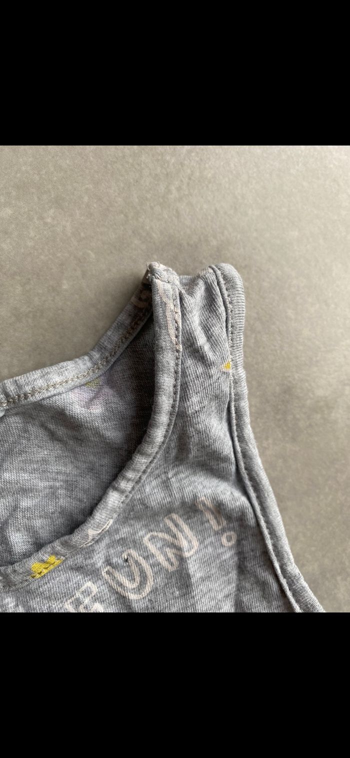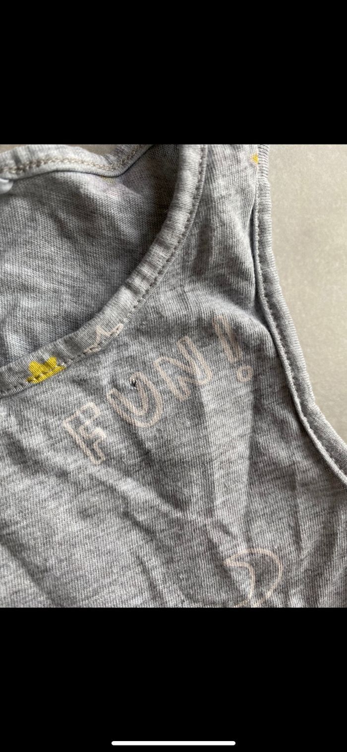 Porté, un petit trou à cause de l'étiquette voir photo. N’hésitez pas à me suivre car encore beaucoup de vêtements fille, des chaussures en cuir, des chaussons… (du 1 mois au 8 ans), des vêtements garçon (du 1 au 12 mois pour le moment ). Maison non-fumeurs et sans animaux même si je les adore. Il n'y aura pas de poils ou d'odeur désagréable. Vous recherchez quelques choses, demandez moi. Je réponds très rapidement. Bon shopping 😊.