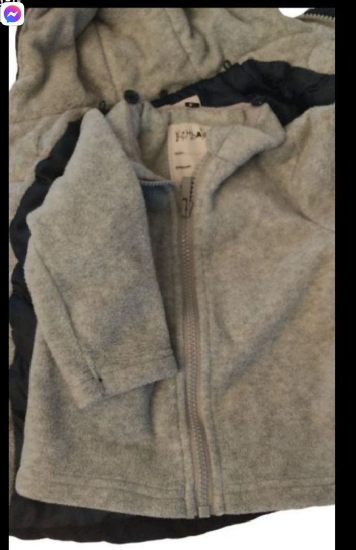 Beau manteau 12 mois kimbaloo Il est en 2 parties. A l.interieur le gilet peut s enlever. 2 fermetures éclair plus des boutons stylés ferment le manteau. Il a également une capuche. Il sera parfait pour garder votre petit bout bien au chaud cet hiver.. taille notée : 12 mois marque : Kimbaloo