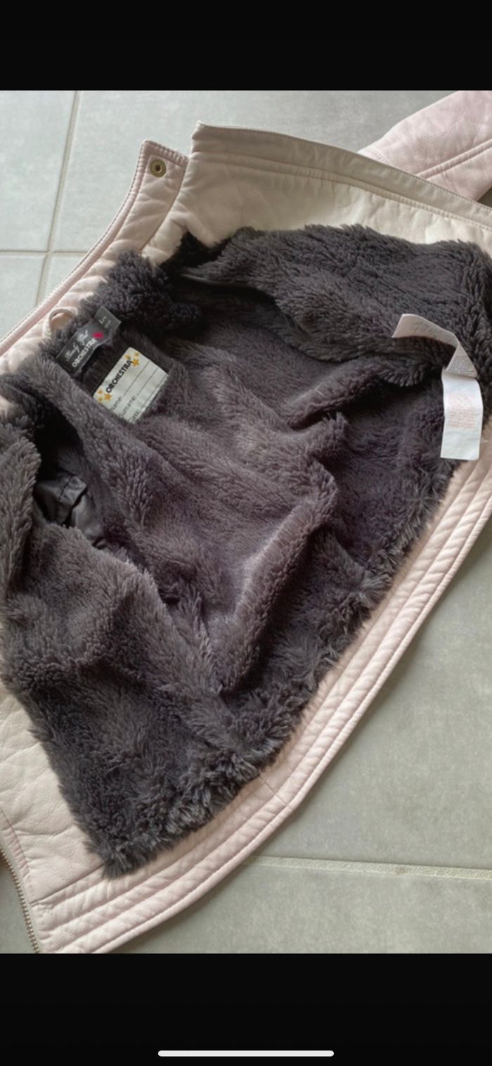 Superbe veste rose pale. Intérieur fourrée. Toute neuve, juste lavé à 30 comme indiqué sur l'étiquette. Plein d'autres vêtements en 4 ans. Si vous recherchez quelque chose demandez moi. N’hésitez pas à me suivre car encore beaucoup de vêtements fille, des chaussures en cuir, des chaussons… (du 1 mois au 8 ans), des vêtements garçon (du 1 au 12 mois pour le moment ). Maison non-fumeurs et sans animaux même si je les adore. Il n'y aura pas de poils ou d'odeur désagréable. Vous recherchez quelques choses, demandez moi. Je réponds très rapidement. Bon shopping 😊.