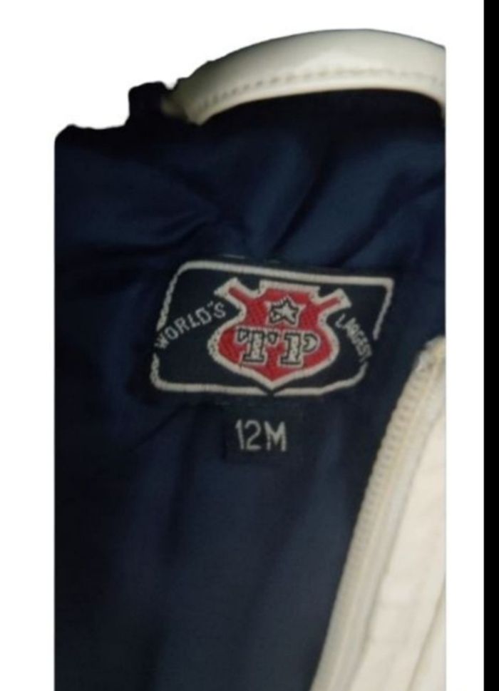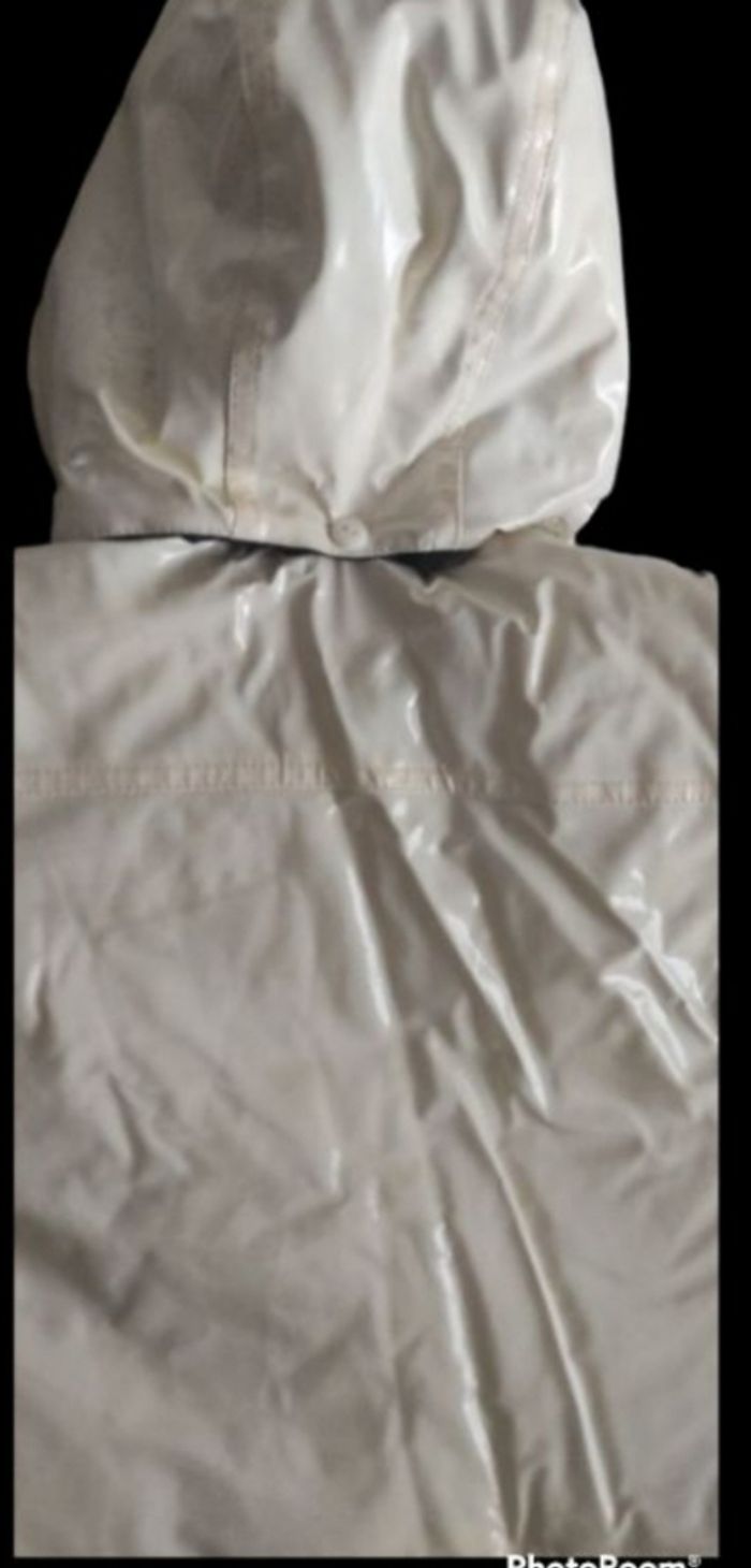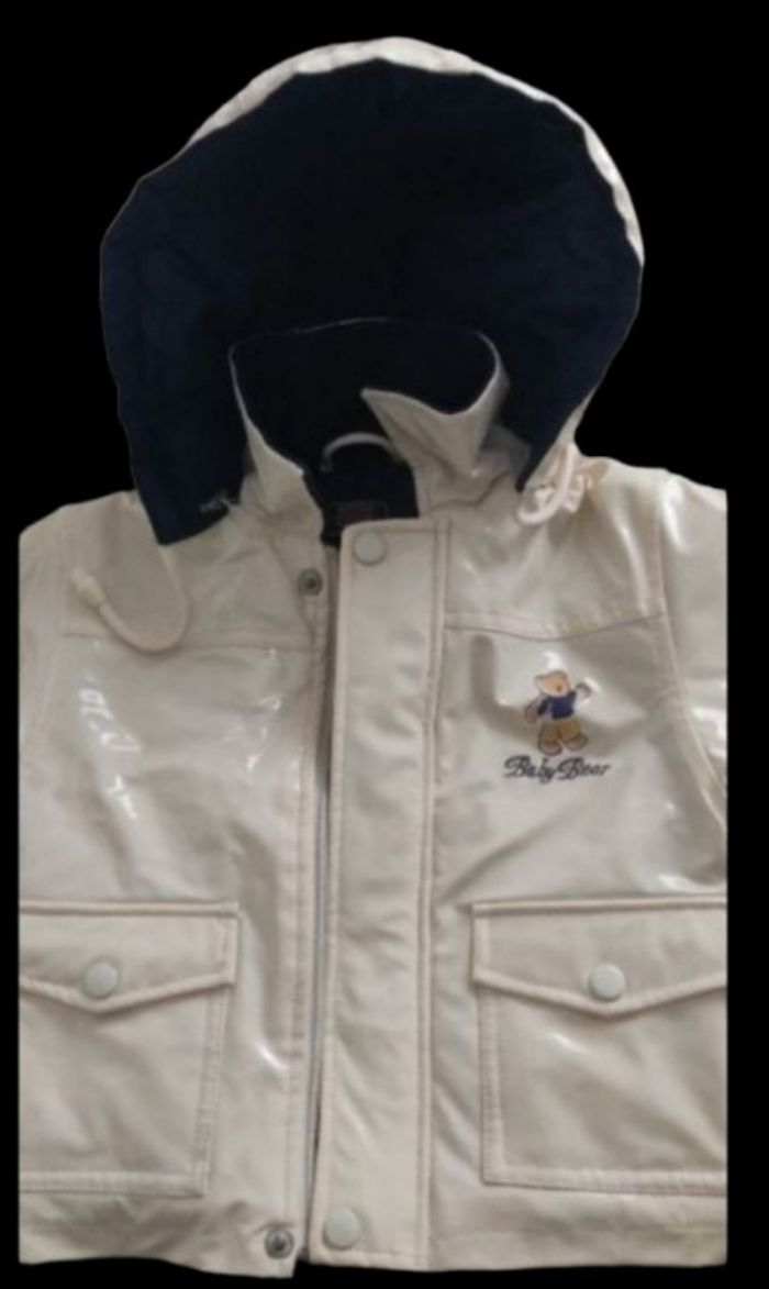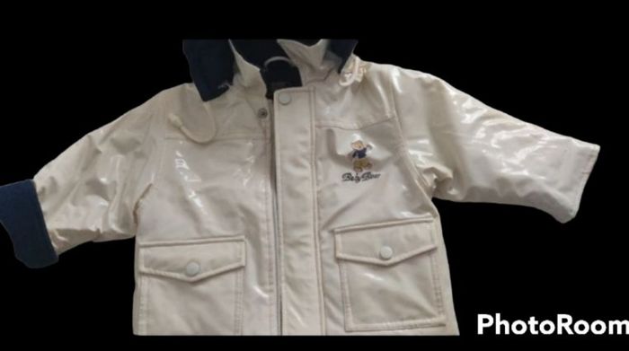 Petit manteau chaud en matière style ciré blanc cassé Capuche amovible Petit ourson en logo Mixte Porté 1 fois Taille notée : 12 mois Marque : TP World s League