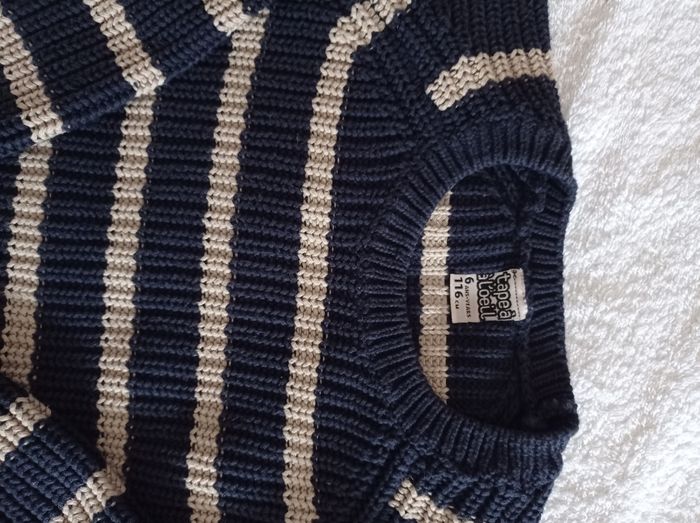 Marque tape à l'oeil taille 6 ans 116 cm pull manches longues voir photos bleu à rayures crème très jolie pull chaud très grande marque - photo numéro 7