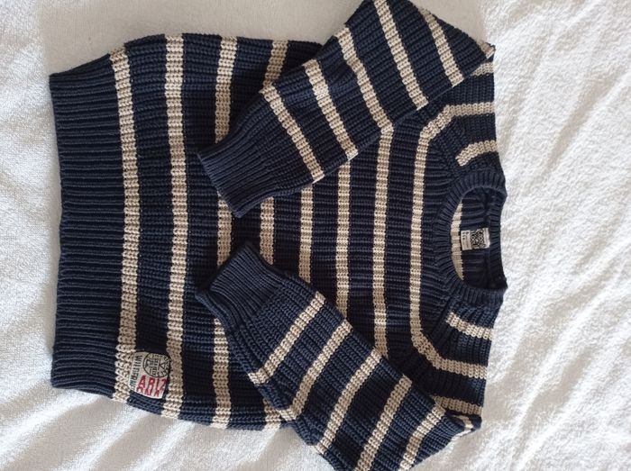 Marque tape à l'oeil taille 6 ans 116 cm pull manches longues voir photos bleu à rayures crème très jolie pull chaud très grande marque - photo numéro 1