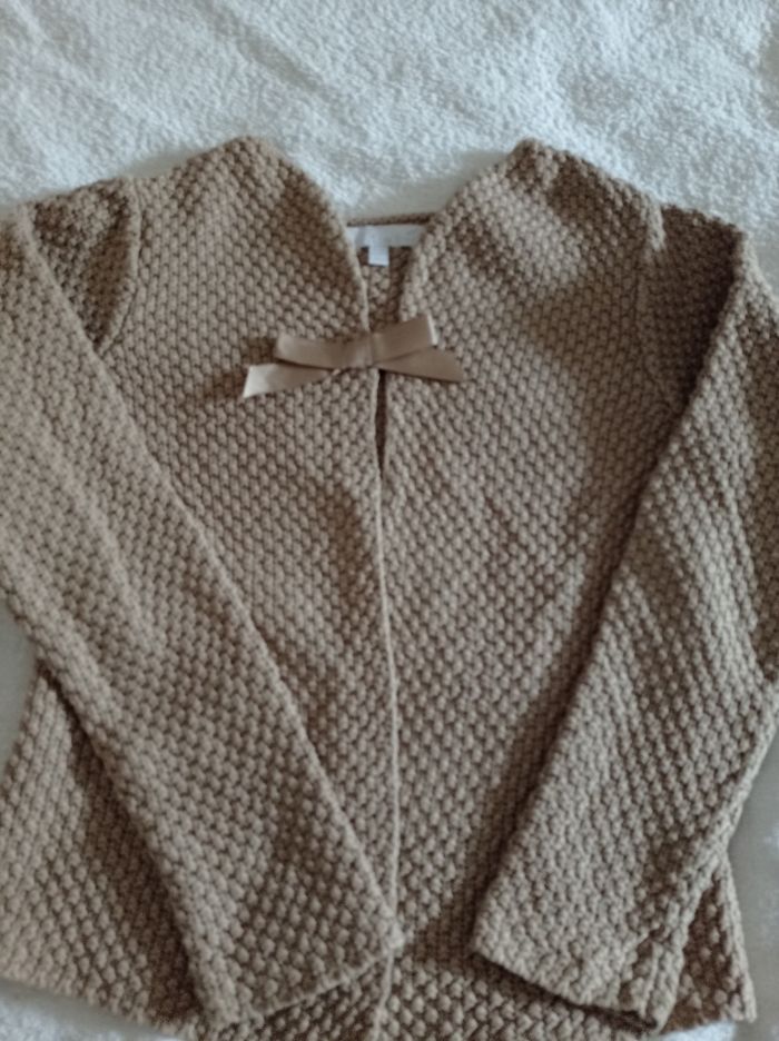Gilet pour fille en laine super jolie la marque c'est Lisa rose très grande marque taille 8 ans 126 cm Liza rose une très grande marque connue joli pull avec un joli nœud devant se faire ma pression porter deux fois