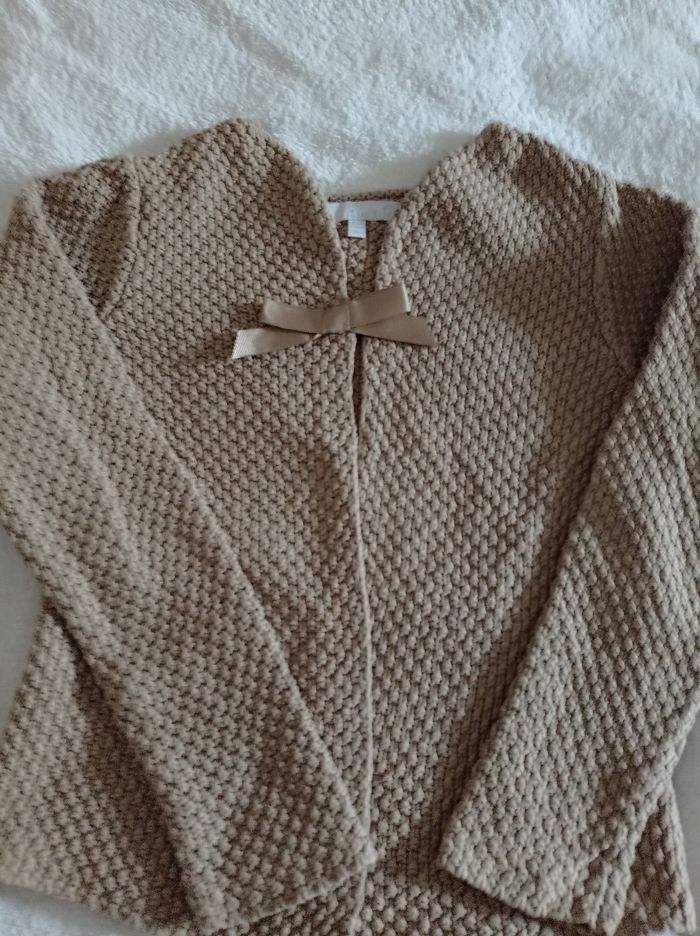 Gilet pour fille en laine super jolie la marque c'est Lisa rose très grande marque taille 8 ans 126 cm Liza rose une très grande marque connue joli pull avec un joli nœud devant se faire ma pression porter deux fois - photo numéro 1