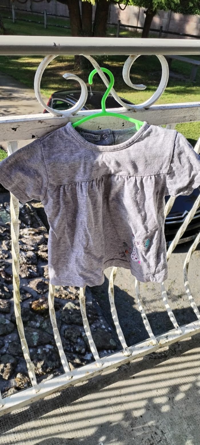 T Shirt gris à manches courtes pour fille. Girafe sur le côté. Marque In Extenso. Taille 24 mois. Comme neuf. Que mondial relais ou Relais Colis.