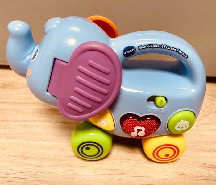 Éléphant à pousser de chez vtech Peu utilisé fonctionne très bien Musique et lumière