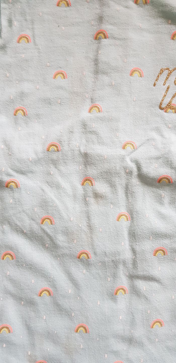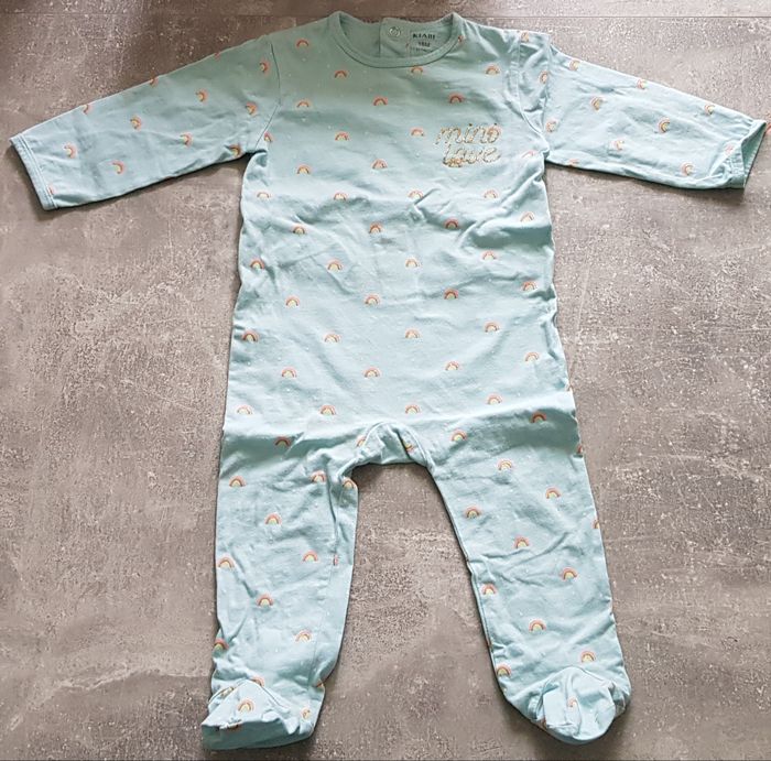 Pyjama 1 pièce fille motifs arc en ciel pailletés, taille 18 mois. Petites taches qui se voient très peu (photo 3) porté quelques fois seulement.