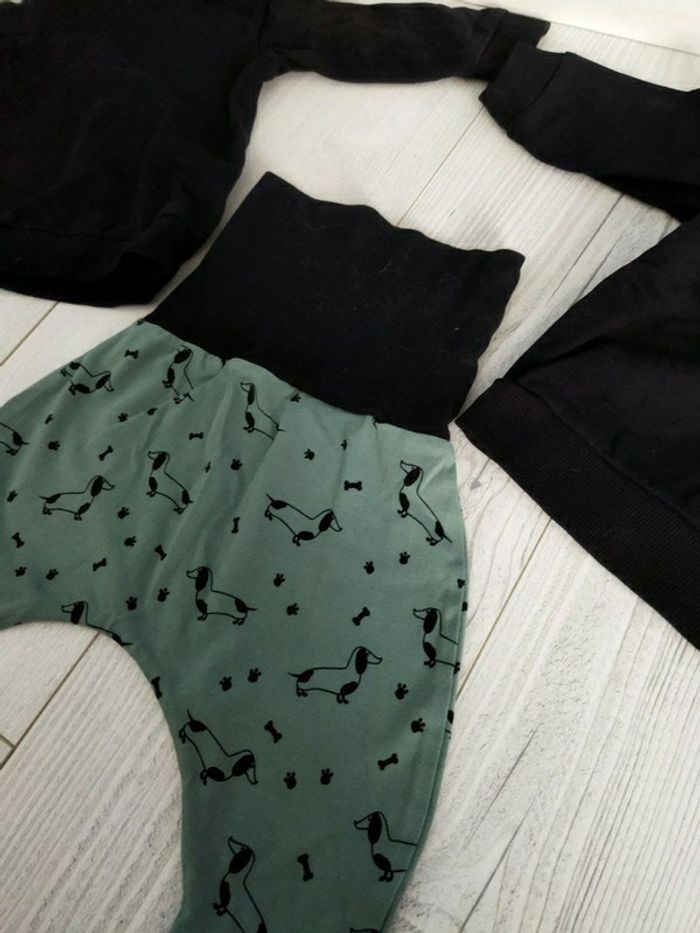 Sarouel évolutif Le soleil sous la pluie et sweats noir taille 6 et 9 mois H&M Parfait pour couches lavables