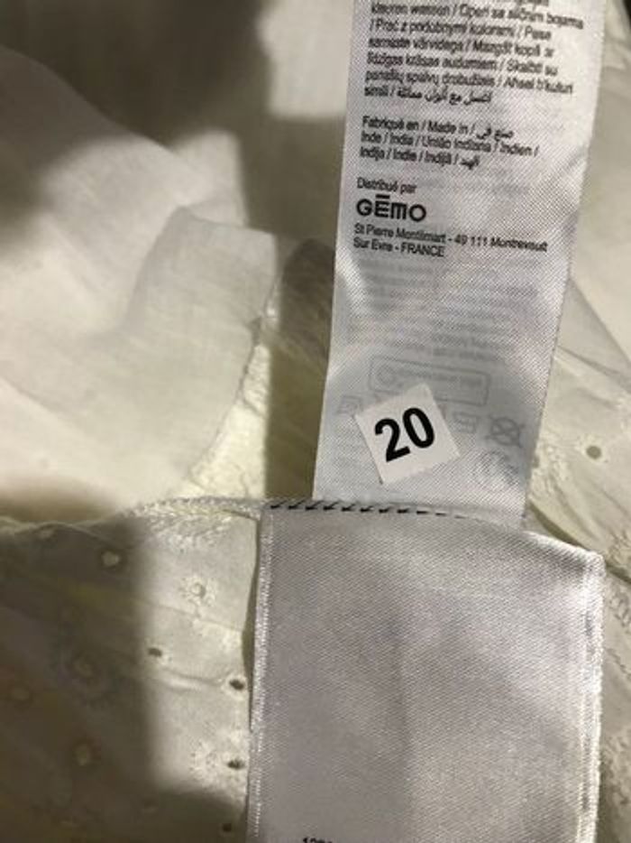 Robe blanc cassé doublée Tissus coton broderies anglaises Manches ballons Jupe à 3 larges volants Taille 34 Lulu Castagnette Gémo Aisselle à aisselle 40,5 cm Largeur à plat ceinture 34,5 cm Longueur en partant de l’épaule 80 cm