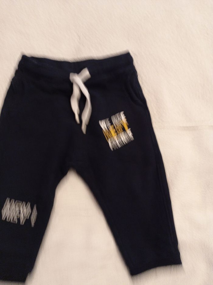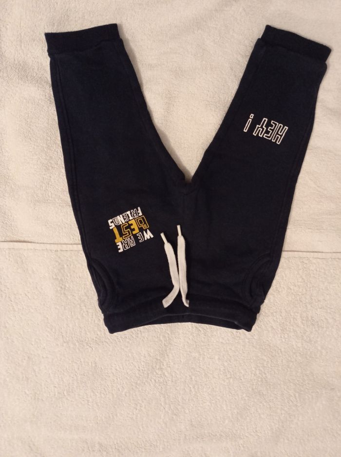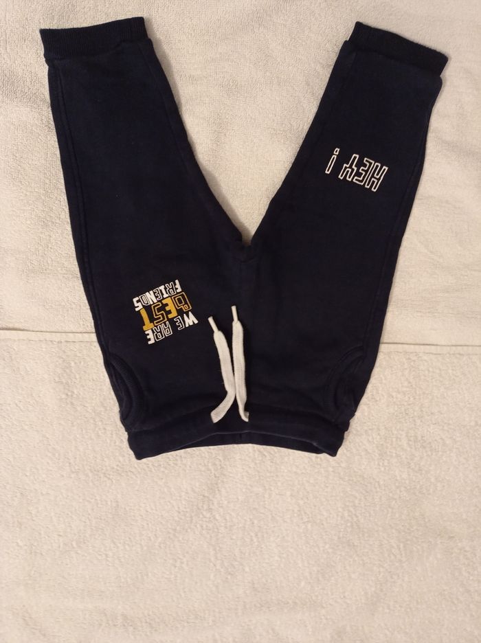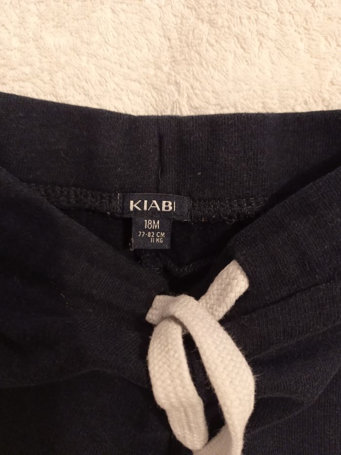 Pantalon bleu avec deux poches devant deux poches derrière cordon à la taille inscription sur la jambe gauche sur la jambe droite voir photos taille 18 mois marque Kiabi pantalon de survêtement
