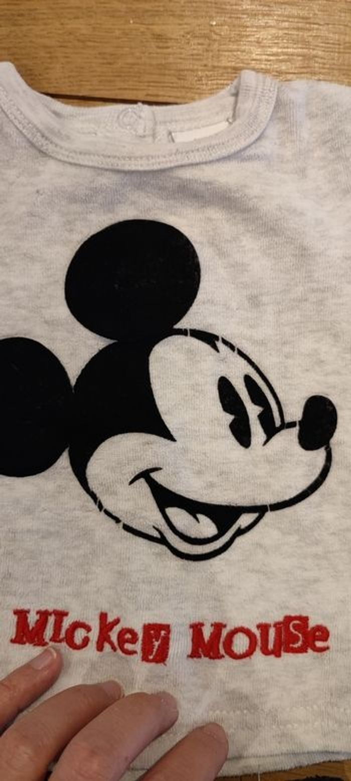 Pyjama 2 pièces Mickey Marque Disney Taille 6 mois Les motifs s'effritent un peu, les pieds sont un peu uses